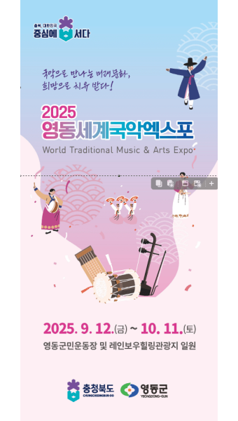 엑스포가 열리는 충북 영동은 오래전부터 국악의 고장으로 알려져 왔으며, 국악계 인사들의 고향이자 다양한 국악 관련 교육시설이 밀집한 지역입니다. 이번 2025국악엑스포는 지역 특성과 국악의 정체성을 자연스럽게 연결하여, 지역의 브랜드 가치를 한층 높이고 있습니다.